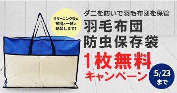 羽毛布団防虫保存袋1枚無料キャンペーン 期間2021年5月7日(金)~2021年5月23日(日)