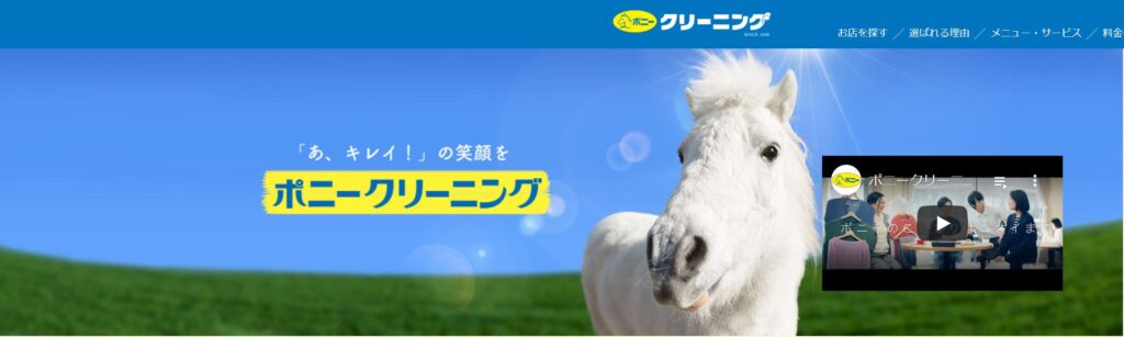 ポニークリーニングは都心を中心にフランチャイズ展開をする、大手の宅配クリーニングチェーンです。