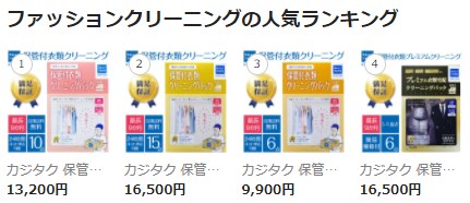 例えば、『カジタク』の集荷キットはクリーニングのカテゴリページでランキング1位です。