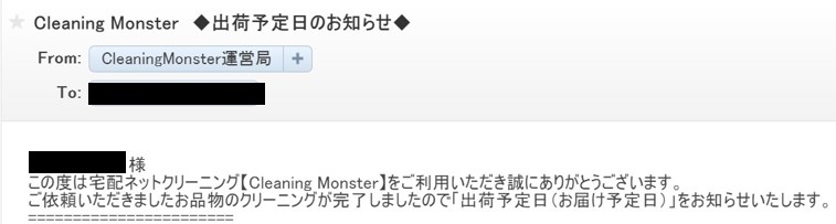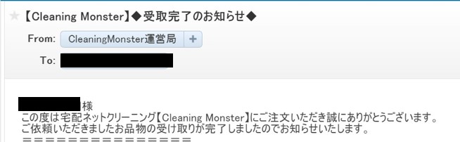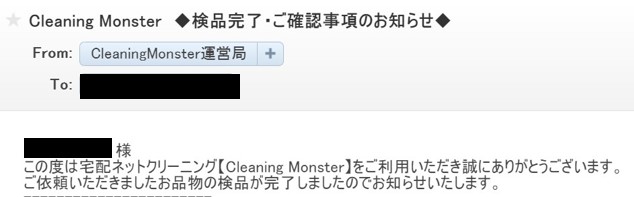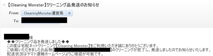 クリーニングの進捗状況をメールで送ってくれるので、自分の衣類の状況が確認できます。