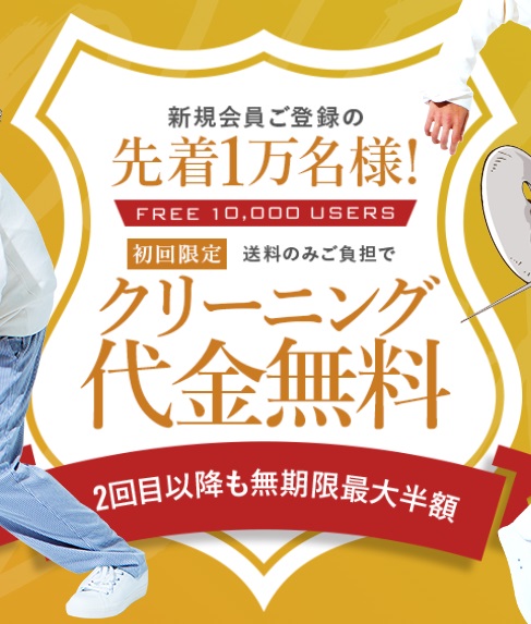 1万名限定で衣類の初回クリーニング代金が無料、2回目以降も無期限で最大半額になるキャンペーンを実施しています