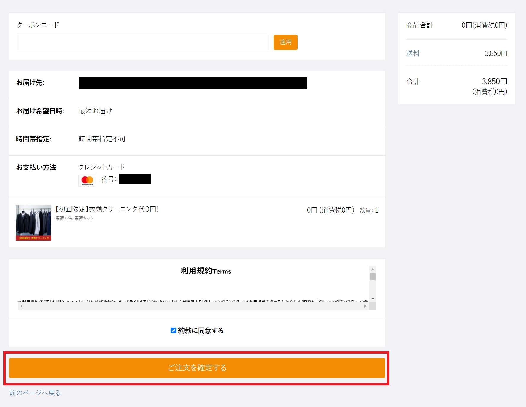 7.入力内容を確認し、問題無ければ『ご注文を確定する』を選択します