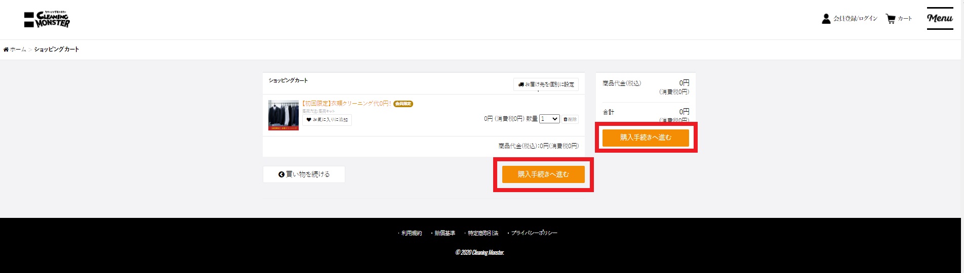 クリーニングモンスターの公式サイトから集荷キットを申し込みます。
