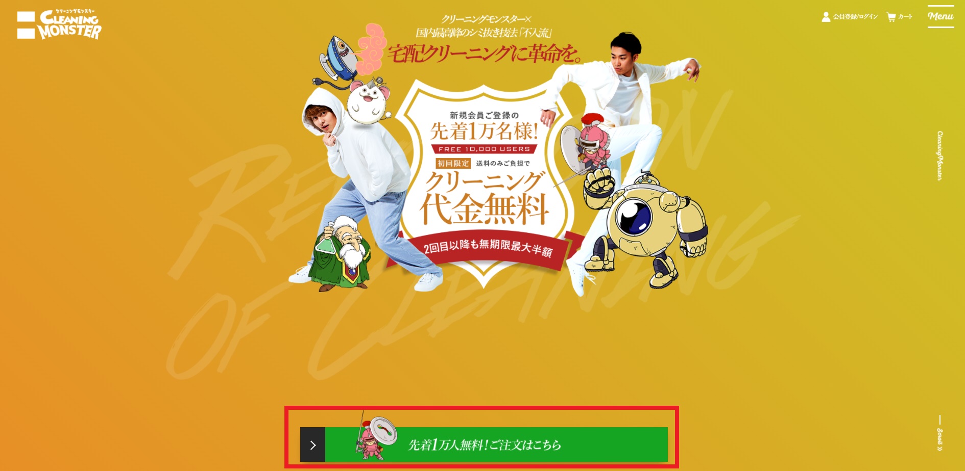 2021年初旬現在、クリーニングモンスターは『初回限定!先着1万名様!クリーニング代金無料』