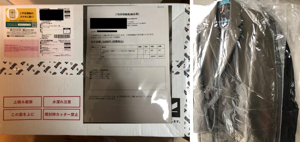 宅配クリーニングの「クリーニングモンスター」の初回10点3,980円キャンペーンを利用してみました。