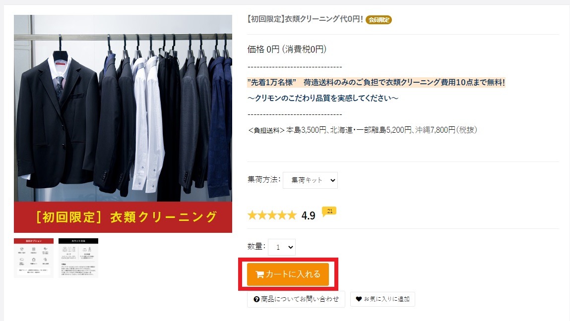 初回に限り送料のみの負担でクリーニング代金が無料になるキャンペーンをやっています。